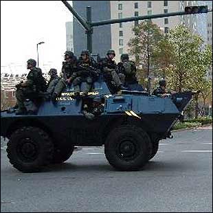 policía desde posiciones de francotiradores.