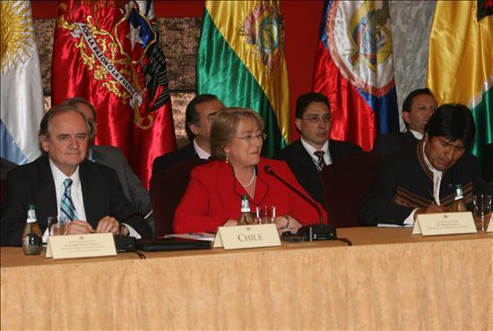 hipótesis de conflicto diseñadas por el Comando Sur para toda la región. En el centro de la imagen, la presidenta de Chile, Michelle Bachelet. |