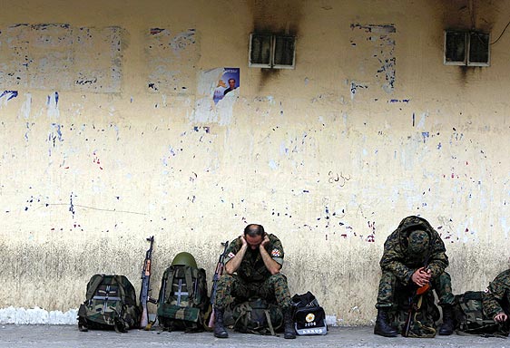 Los soldados del Ejército georgiano recuperan fuerzas en Gori, ubicada a 80 kilómetros de Tiflis. (Foto: Gleb Garanich/REUTERS).