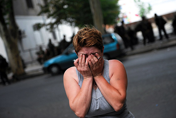 Una mujer llora después de que el Ejército ruso bombardeara un hospital de la cuidad georgiana de Gori. (Foto: Dimitar Dilkoff/AFP).